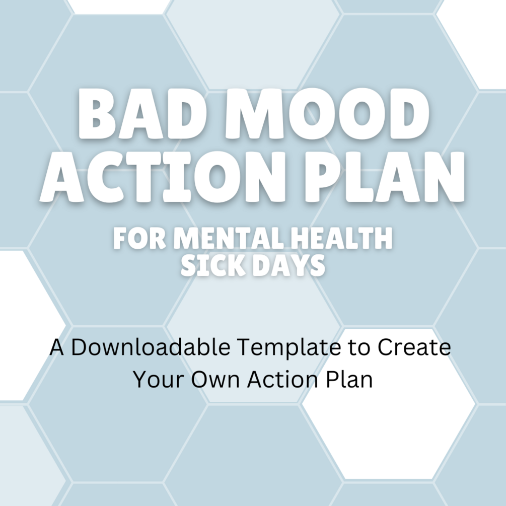 Build your own action plan for when a low mental health day hits. We call these bad mood action plans, but you can also call them mental health sick days.